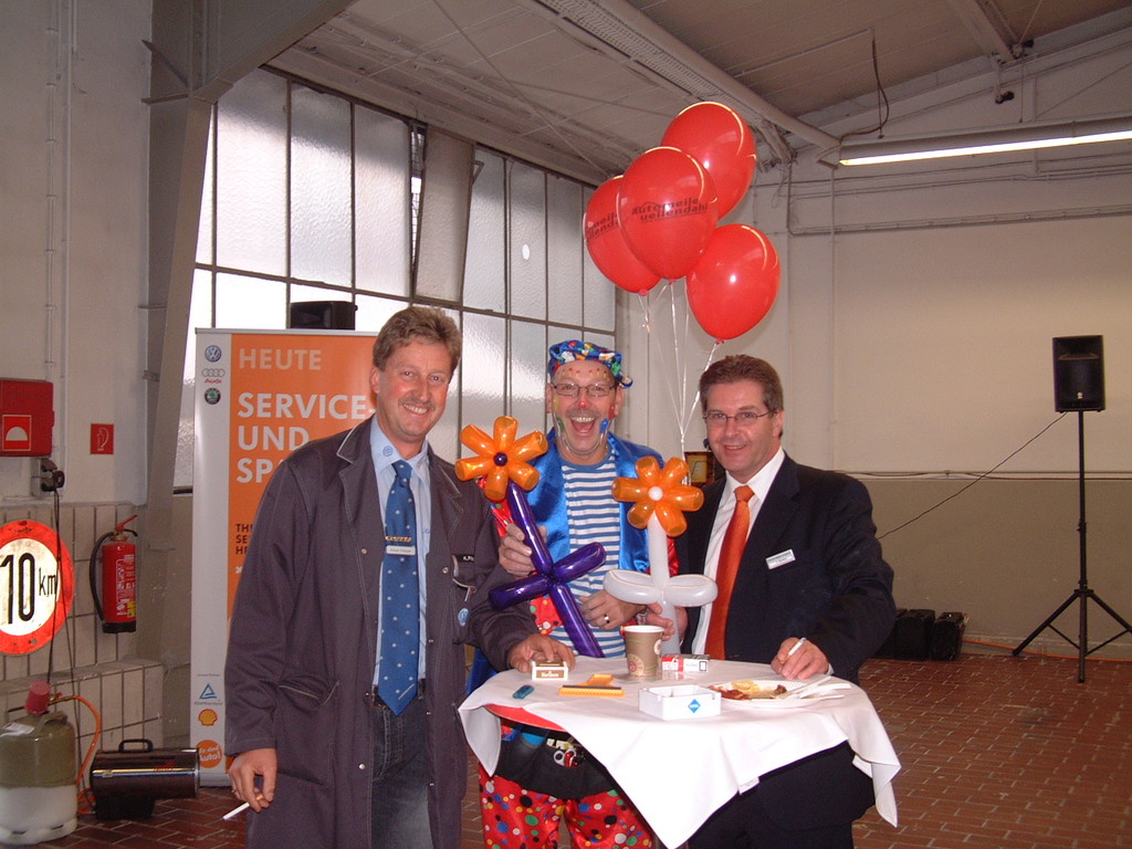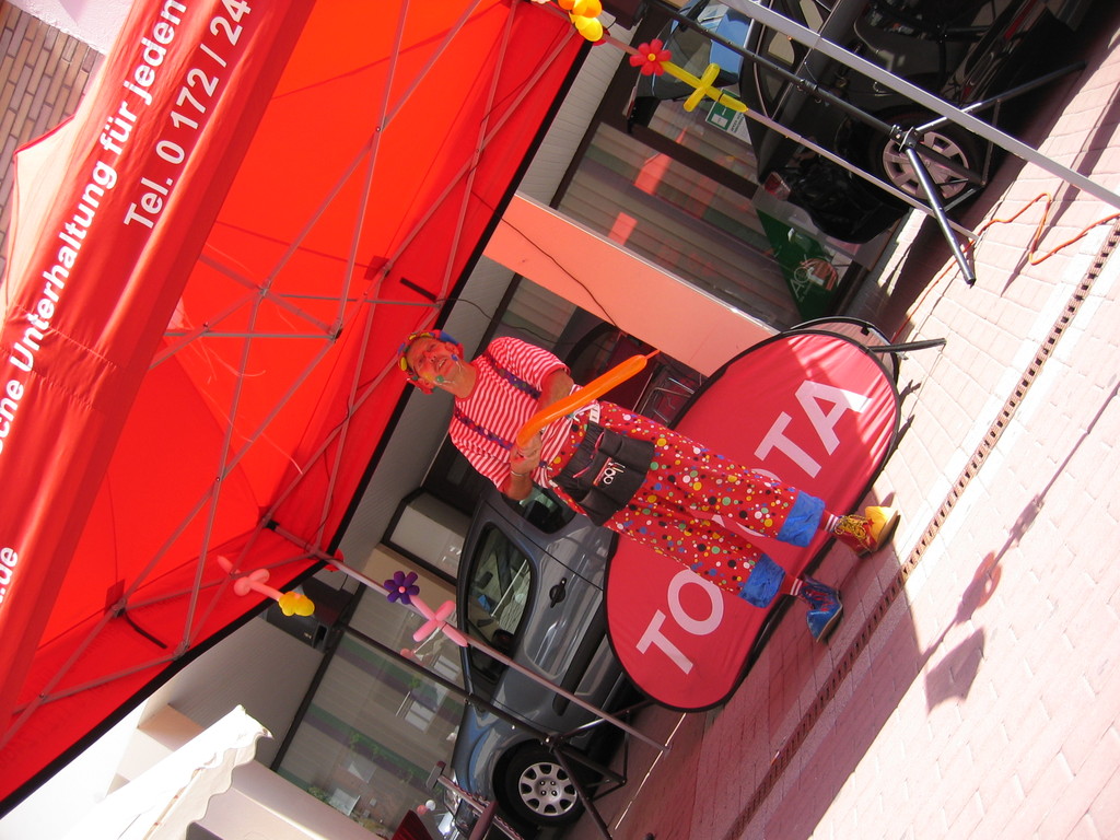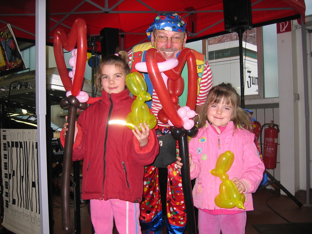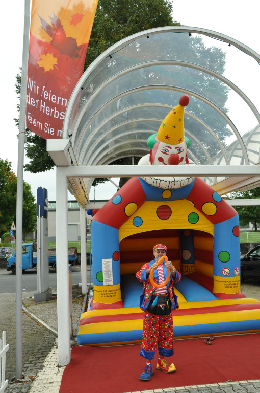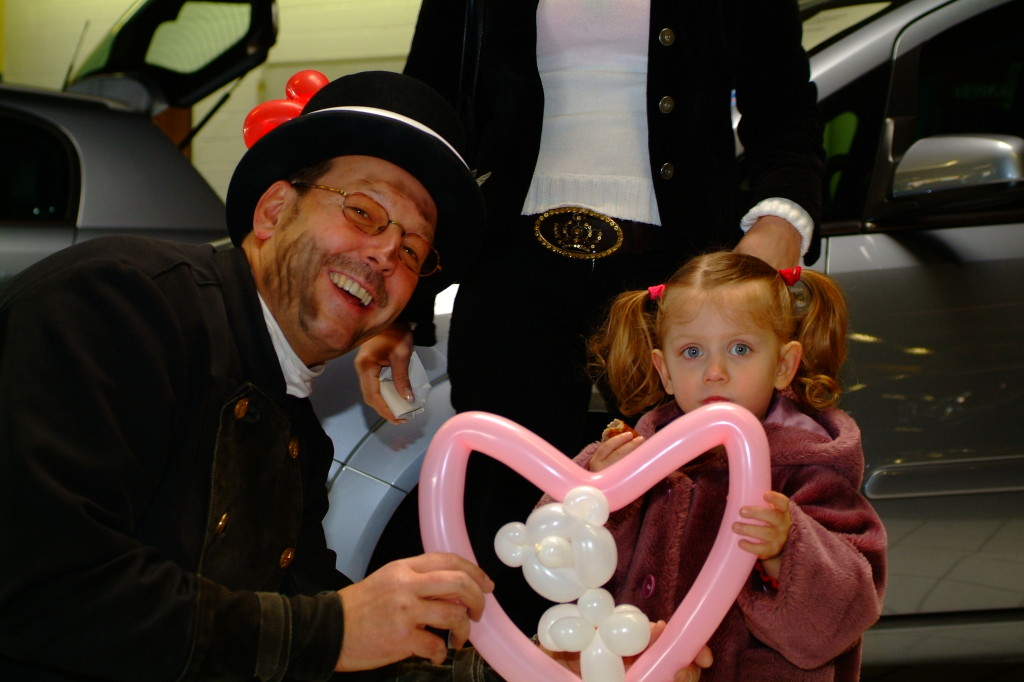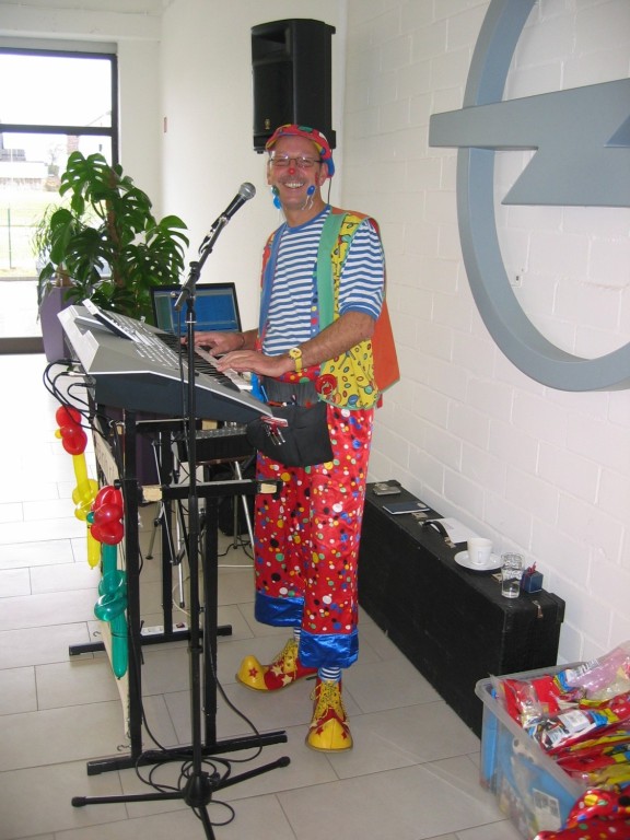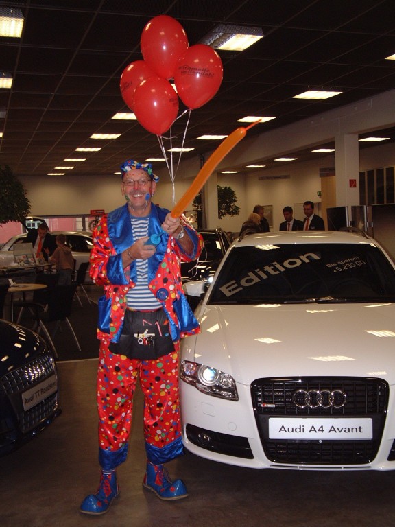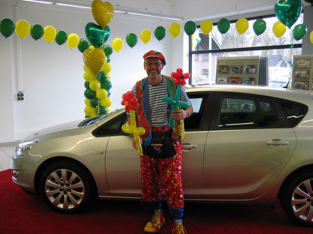 Liebe Besucher meiner Homepage, ich war schon für viele Autohäuser- und Marken tätig. Dort konnte ich die Besucher mit meinen Luftballons als Clown verkleidet, verzaubern. Die Kinder können sich auf der Clown-Hüpfburg austoben oder ihr Fußballerisches Geschick an der aufblasbaren Torwand ausprobieren. Sollte der süße Hunger auftreten kann dieser mit Popcorn aus der Popcorn-Maschine gestillt werden. Zur musikalischen Unterhaltung bringe ich gerne meinen Laptop mit unzähligen Titeln mit, sollte Live-Musik gewünscht werden, kein Problem, dann gehe ich zwischendurch ans Keyboard und spiele Titel die jeder kennt und mitsingen kann. Falls Sie einen Neuwagen ins rechte Licht rücken möchten, kann ich diesen gerne mit einer tollen, auffälligen Ballondeko versehen. Wenn Sie die Kinder mit Gasgefüllten Ballons oder einem Weitflugwettbewerb begeistern möchten, bringe ich gerne die dafür benötigten Dinge mit.