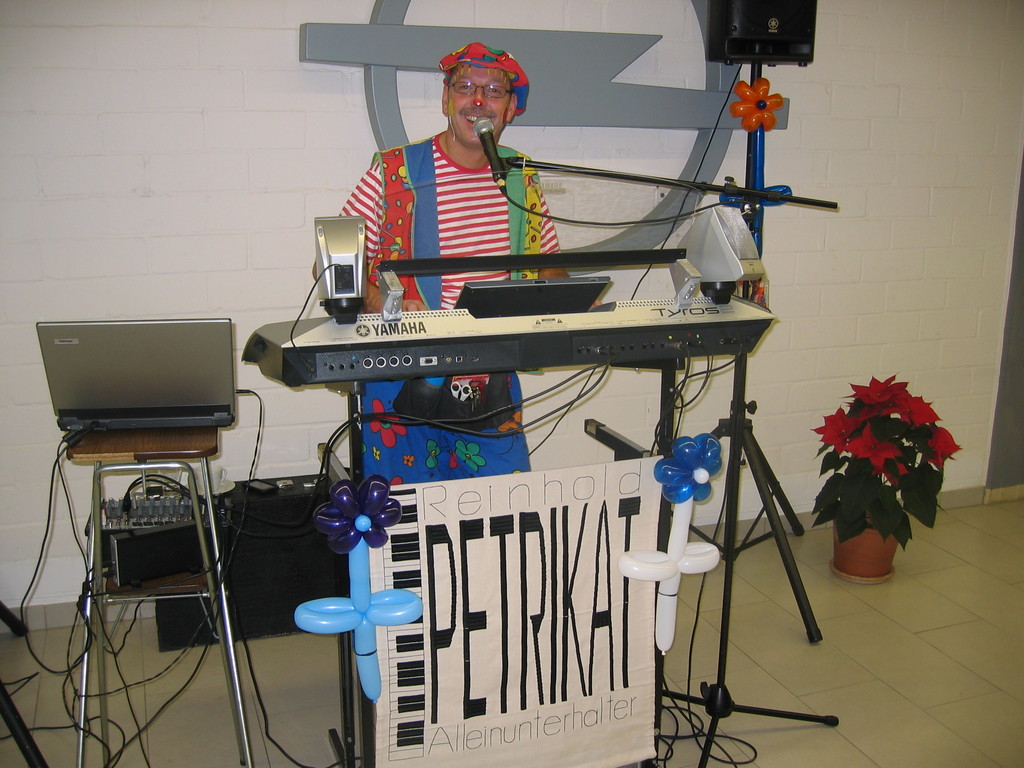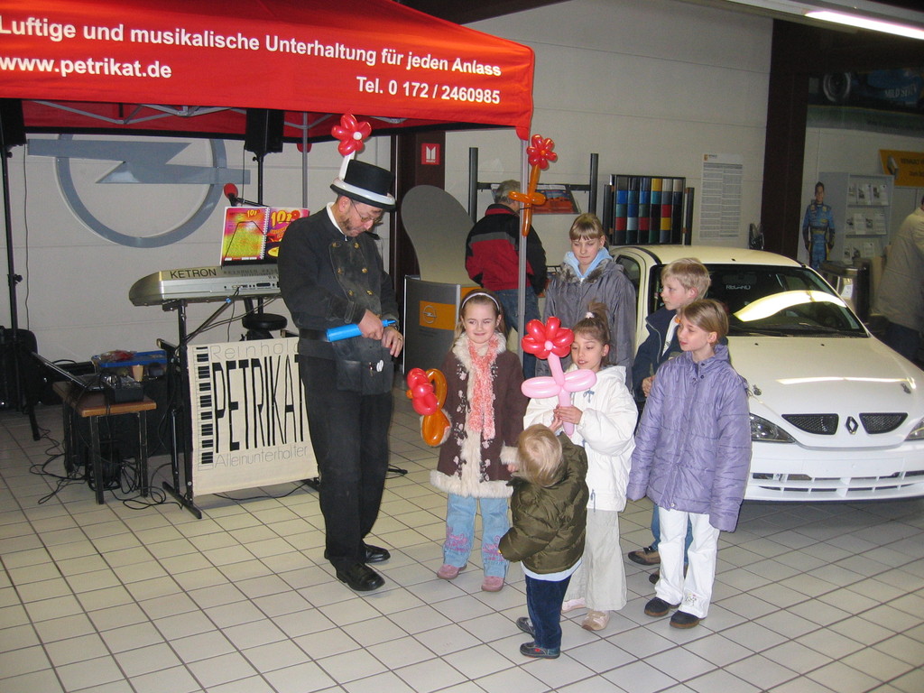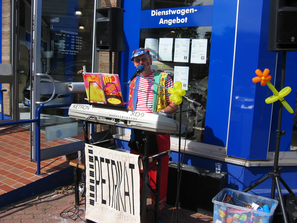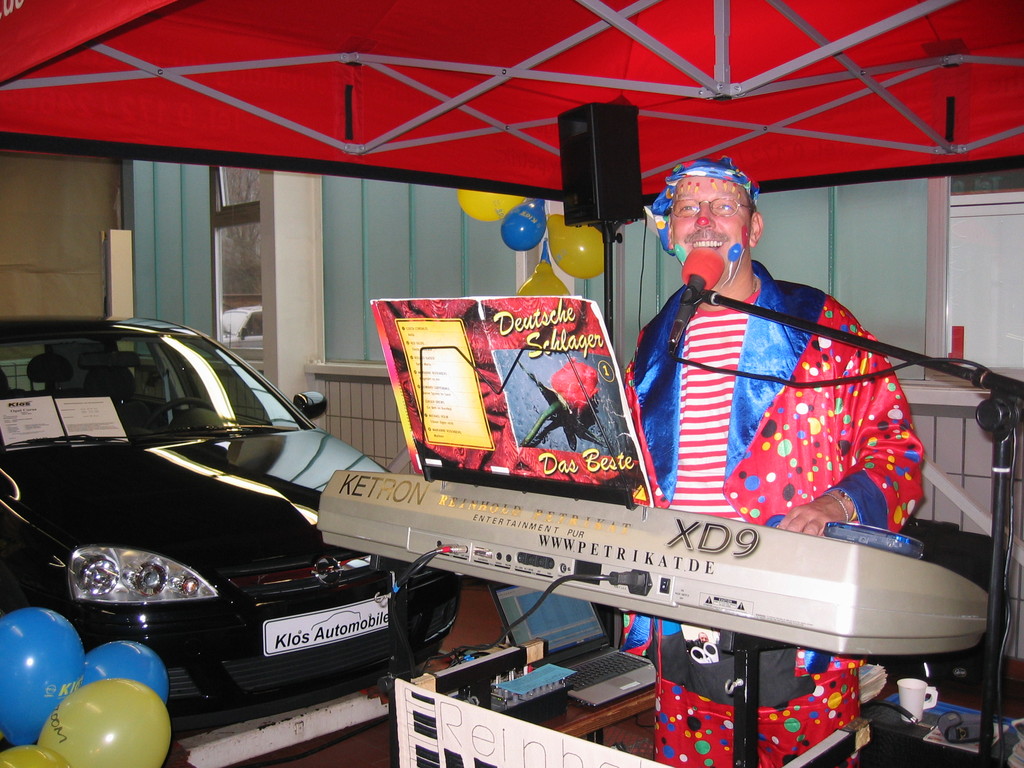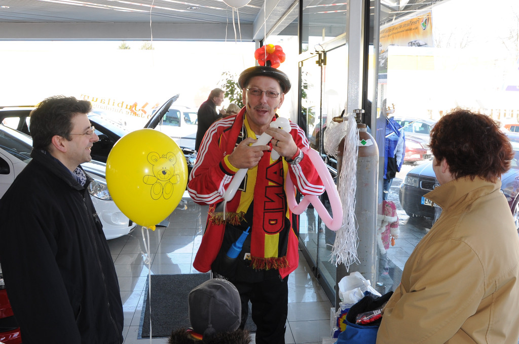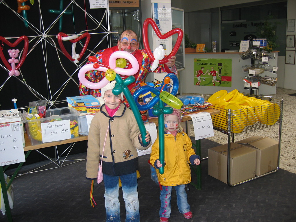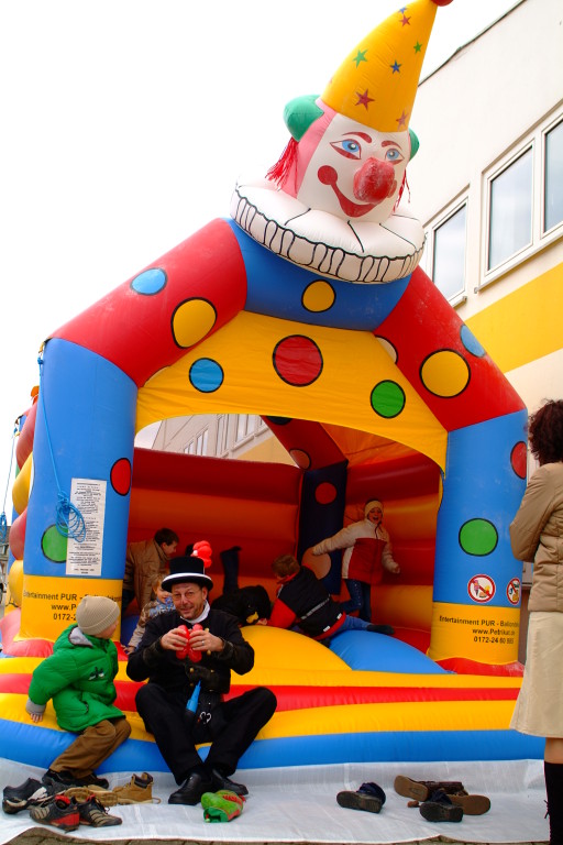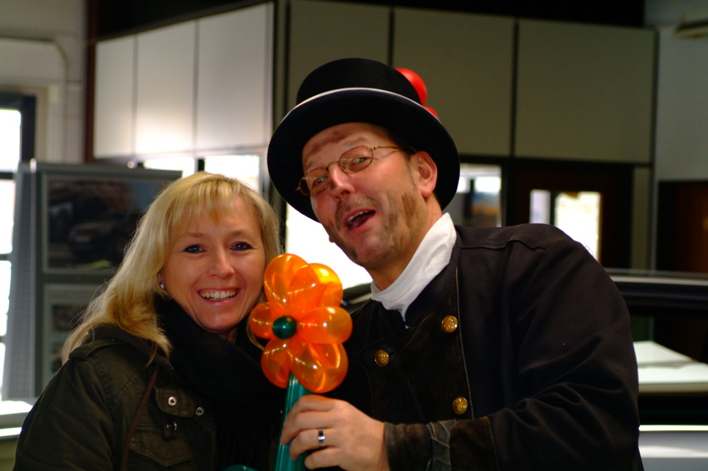 Liebe Besucher meiner Homepage, ich war schon für viele Autohäuser- und Marken tätig. Dort konnte ich die Besucher mit meinen Luftballons als Clown verkleidet, verzaubern. Die Kinder können sich auf der Clown-Hüpfburg austoben oder ihr Fußballerisches Geschick an der aufblasbaren Torwand ausprobieren. Sollte der süße Hunger auftreten kann dieser mit Popcorn aus der Popcorn-Maschine gestillt werden. Zur musikalischen Unterhaltung bringe ich gerne meinen Laptop mit unzähligen Titeln mit, sollte Live-Musik gewünscht werden, kein Problem, dann gehe ich zwischendurch ans Keyboard und spiele Titel die jeder kennt und mitsingen kann. Falls Sie einen Neuwagen ins rechte Licht rücken möchten, kann ich diesen gerne mit einer tollen, auffälligen Ballondeko versehen. Wenn Sie die Kinder mit Gasgefüllten Ballons oder einem Weitflugwettbewerb begeistern möchten, bringe ich gerne die dafür benötigten Dinge mit.