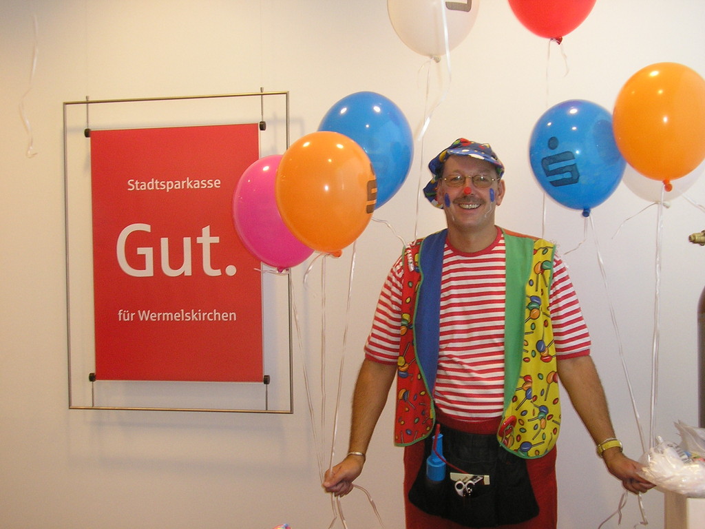 ich war schon für viele Banken und Sparkassen tätig. Sei es als Musiker, Ballonclown, Ballondekorateur, Ballonweitflugwettbewerbe oder als Kinderanimateur. Meine Vielfältigkeit ermöglicht es mir Ihnen für jedes Event das richtige Angebot zu unterbreiten. Machen Sie davon Gebrauch und sprechen mich an. Aber zuerst wünsche ich Ihnen gute Unterhaltung beim Betrachten meiner Bilder und Filme.