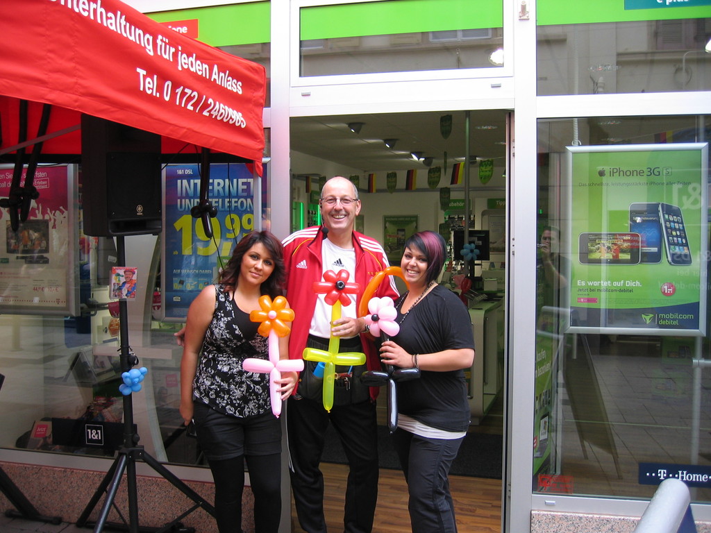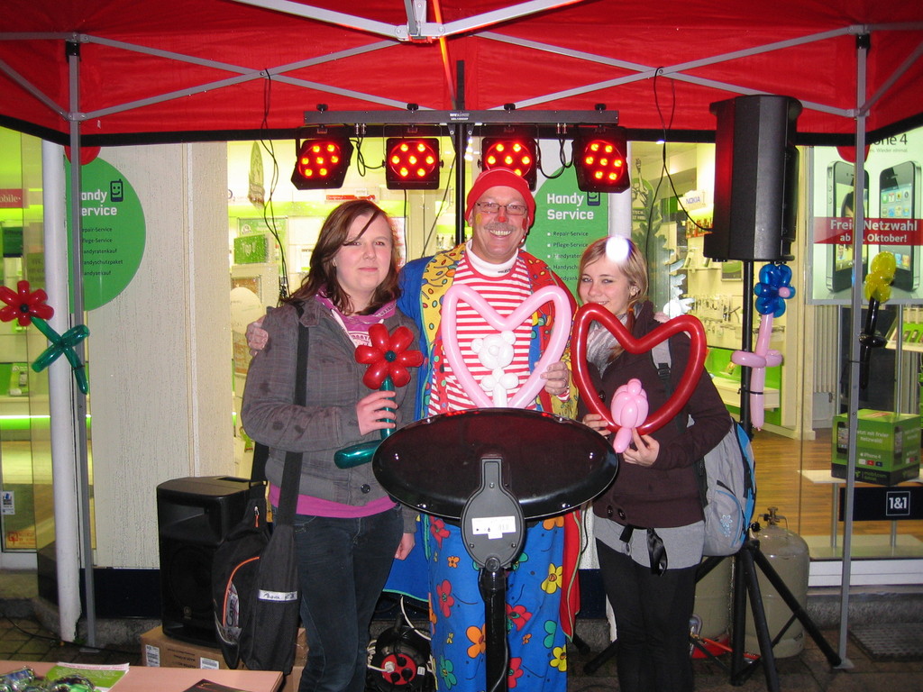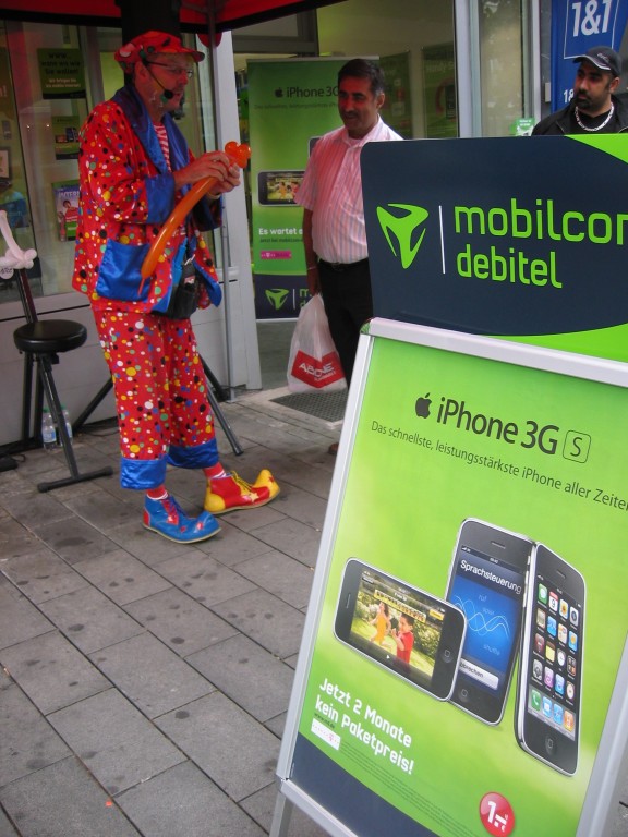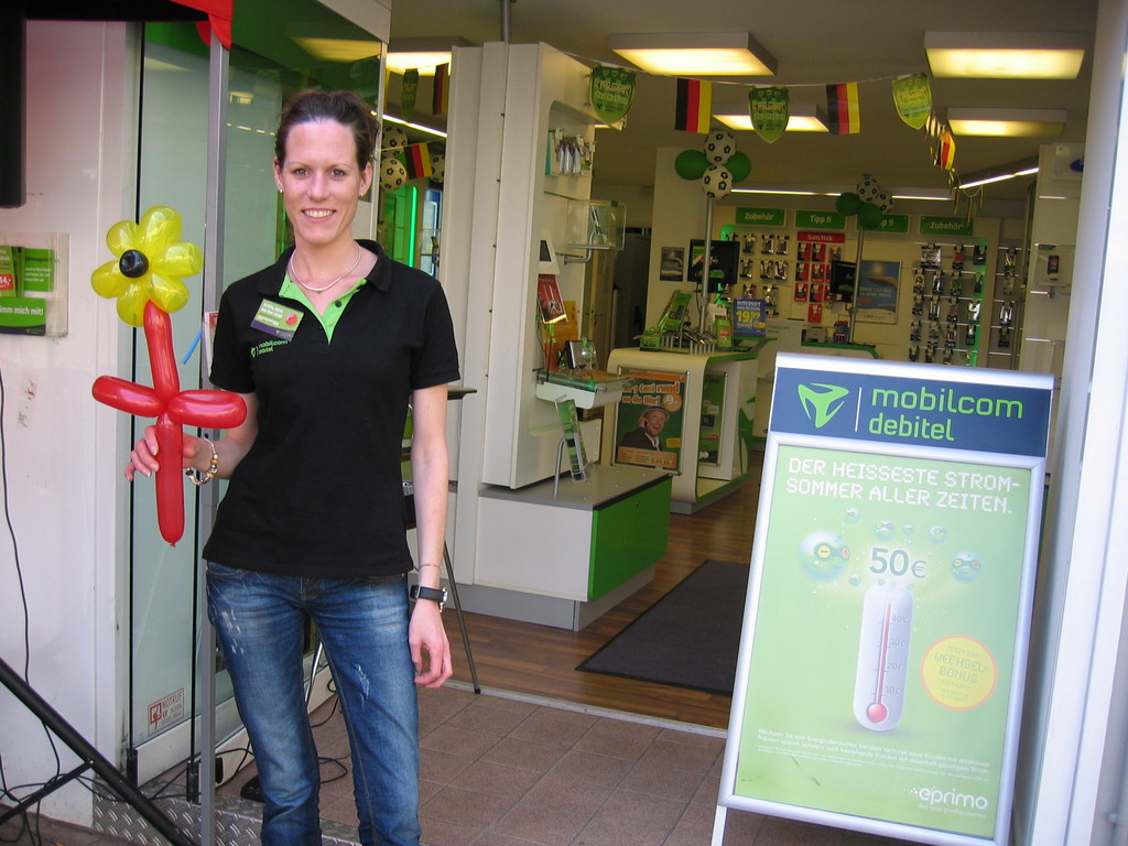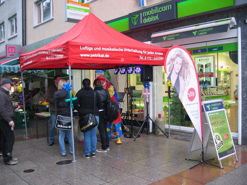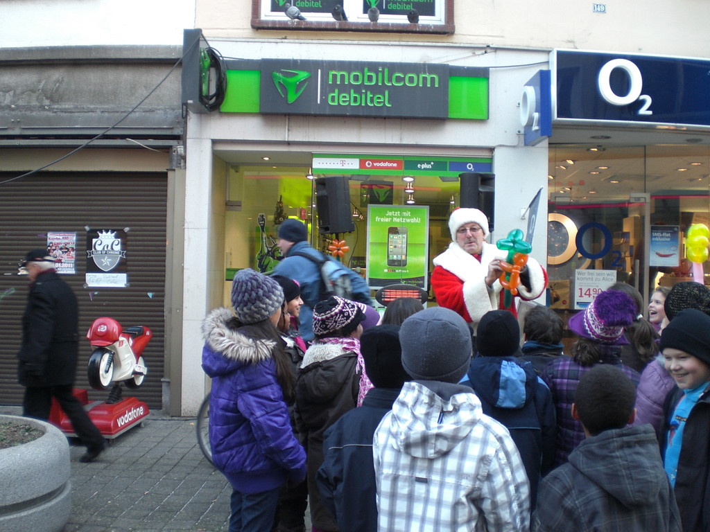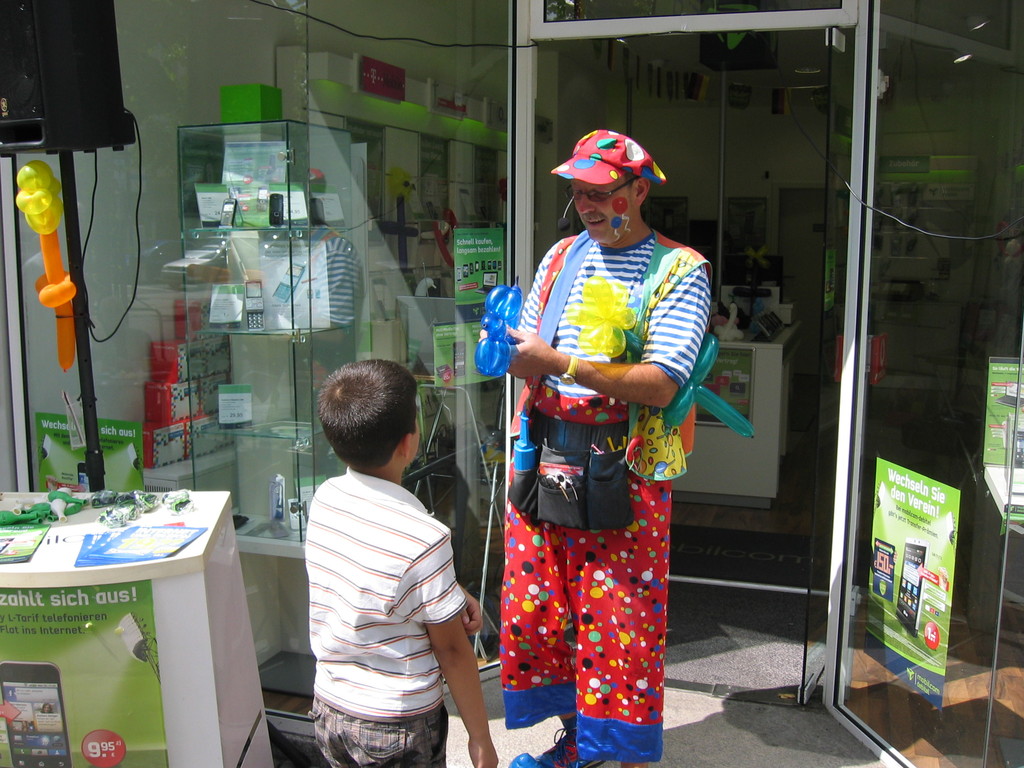 Liebe Besucher meiner Homepage. Für mobilcom-debitel bin ich seit 2009 regelmäßig im Einsatz. Kundenbezogene Werbung mit dem Ballonclown Reinoldi, zur Fußballweltmeisterschaft als Fußballer Reinoldi, zur Weihnachtszeit als menschlicher Weihnachtsmann. Durch die Ballonshow, unterstützt mit CD-Musik, werden die vorbeigehenden Menschen auf mobilcom-debitel aufmerksam gemacht und die Mitarbeiter bieten sofort und direkt die Produkte von mobilcom-debitel an. Eine sehr effektvolle Direktwerbung :-) Bitte schauen Sie sich die Bilder und Filme an, wenn Sie interessiert sind setzen Sie sich bitte mit mir in Verbindung !