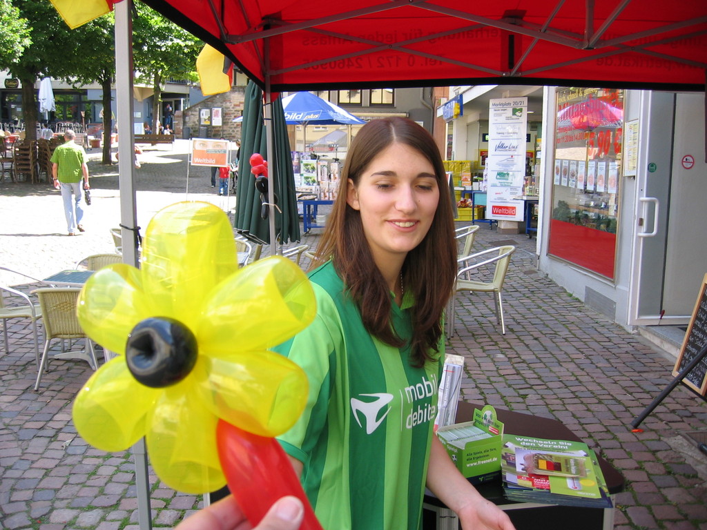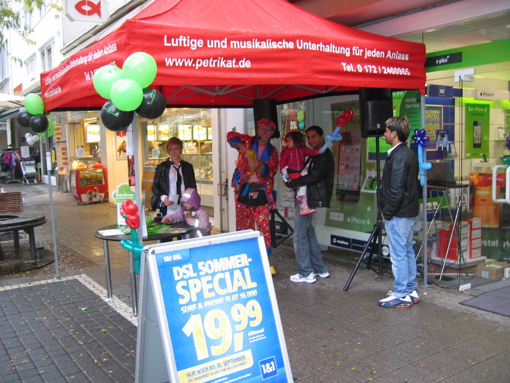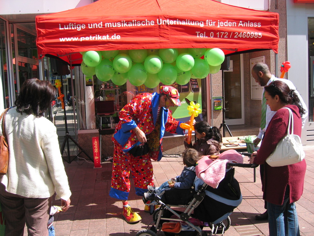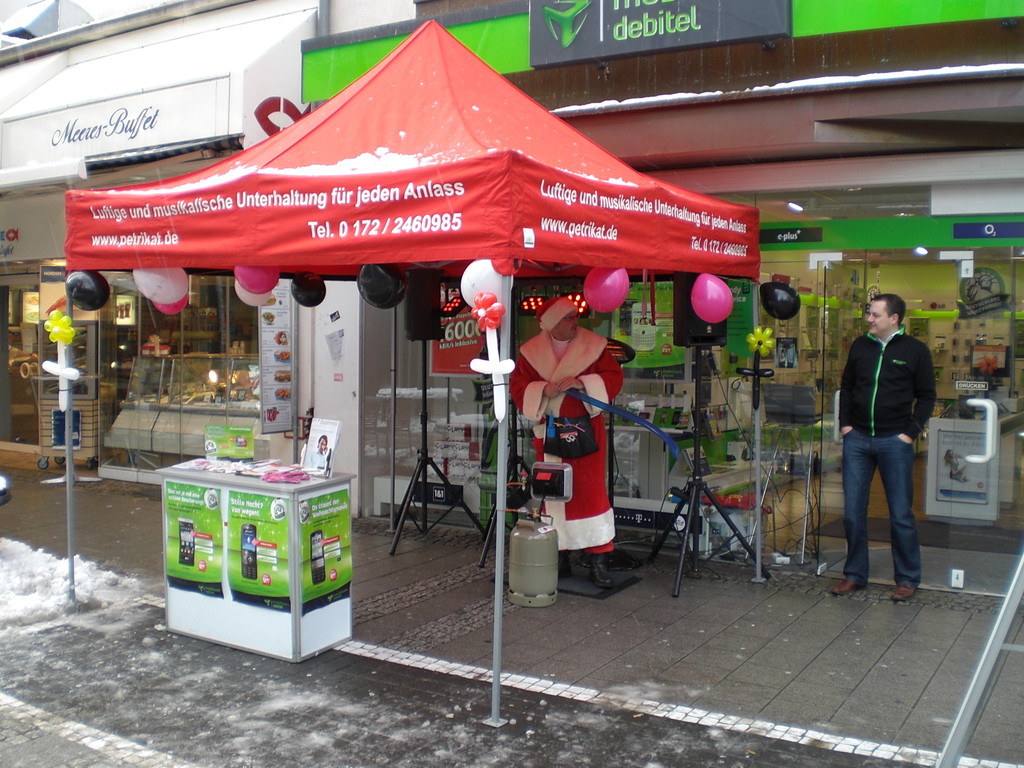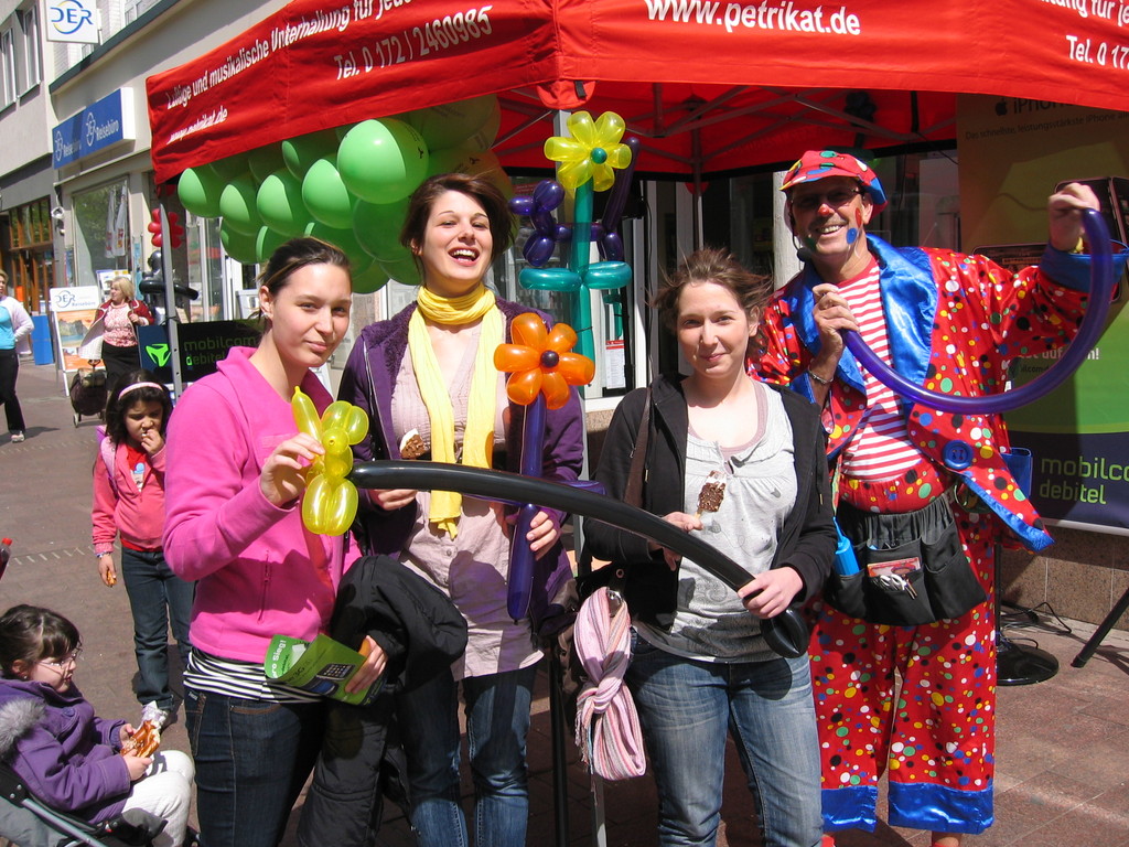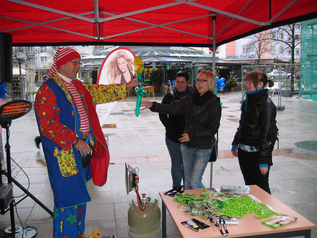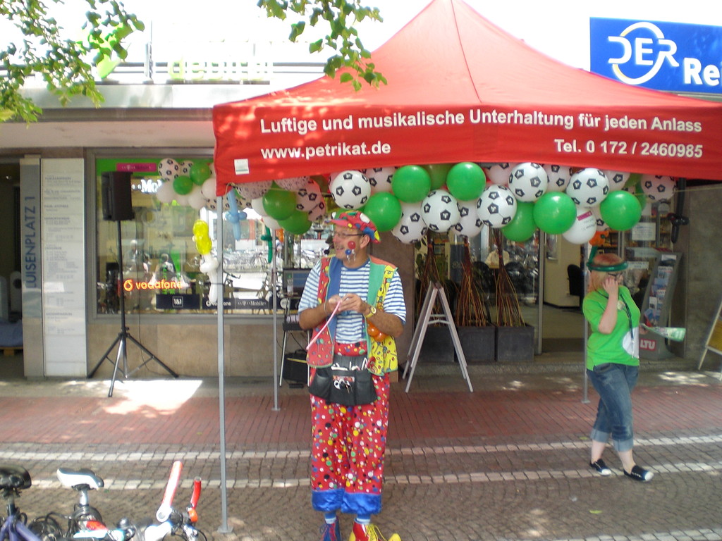 Liebe Besucher meiner Homepage. Für mobilcom-debitel bin ich seit 2009 regelmäßig im Einsatz. Kundenbezogene Werbung mit dem Ballonclown Reinoldi, zur Fußballweltmeisterschaft als Fußballer Reinoldi, zur Weihnachtszeit als menschlicher Weihnachtsmann. Durch die Ballonshow, unterstützt mit CD-Musik, werden die vorbeigehenden Menschen auf mobilcom-debitel aufmerksam gemacht und die Mitarbeiter bieten sofort und direkt die Produkte von mobilcom-debitel an. Eine sehr effektvolle Direktwerbung :-) Bitte schauen Sie sich die Bilder und Filme an, wenn Sie interessiert sind setzen Sie sich bitte mit mir in Verbindung !