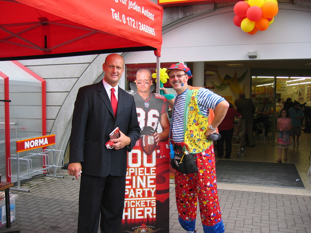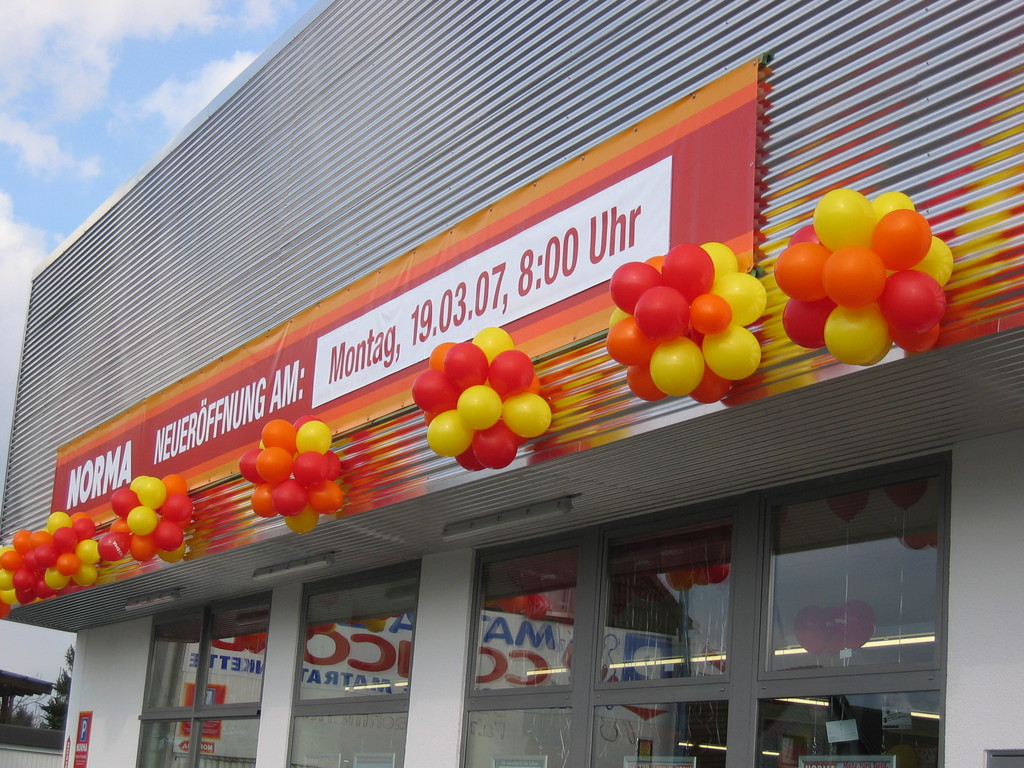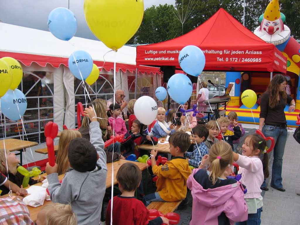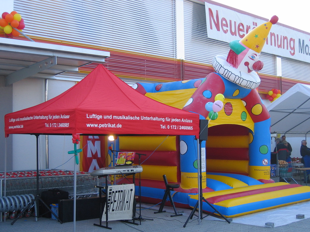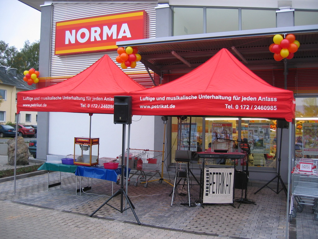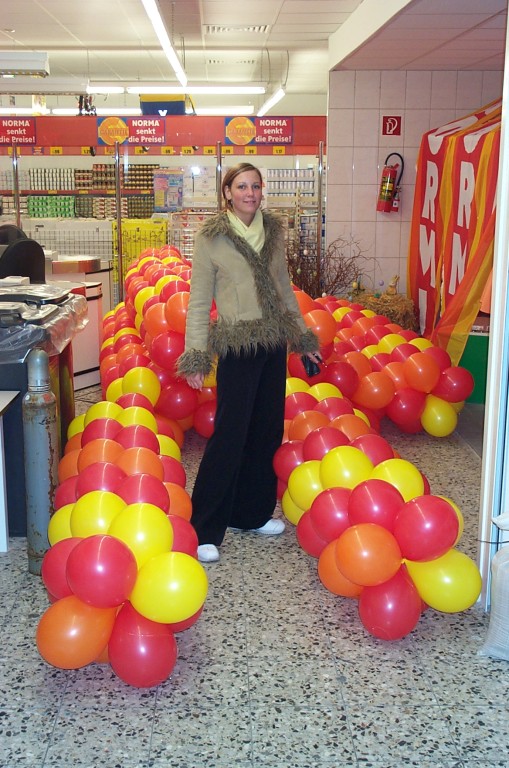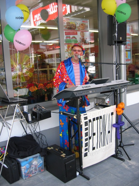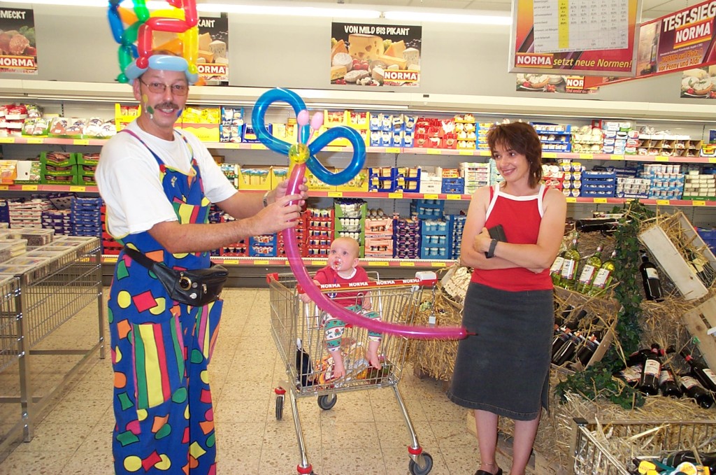 Sehr geehrte Besucher meiner Homepage, für NORMA bin in den Gebieten der Niederlassungsleitungen von NRW und Rheinland-Pfalz schon oft tätig gewesen. Gerne kann ich auch für Sie tätig werden und Ihre Neueröffnungen oder sonstige Events mit meinen Diensten und Eventmodulen bereichern. Dabei kann ich mir Vorstellen am Tag vor der Eröffnung oder des Events eine Ballondekoration anzubringen, am Tag der Eröffnung kann der "Ballonclown Reinoldi" anwesenden Kindern und deren Eltern die schönsten Ballonfiguren erstellen und in Ihrem Namen verschenken, desweiteren kann die Clown-Hüpfburg aufgebaut werden und wenn gewünscht kann ich die Gäste auch mit Live-Musik am Keyboard oder zur mit CD-Musik unterhalten. Bitte schauen Sie sich die Bilder und Filme von NORMA an. Vielen Dank für Ihren Besuch auf meiner Homepage.