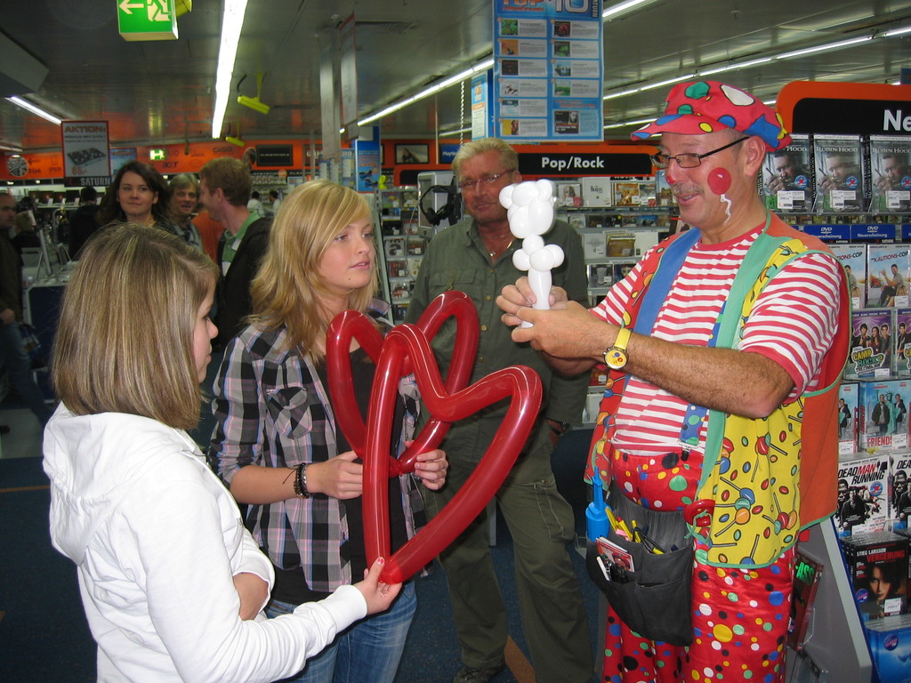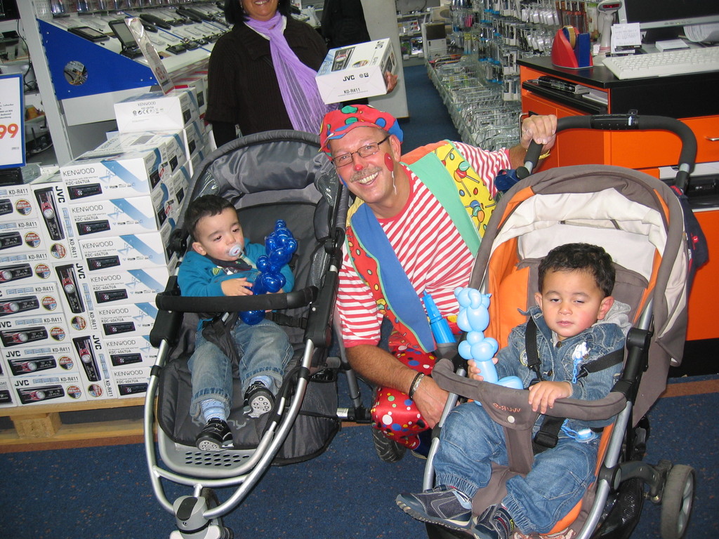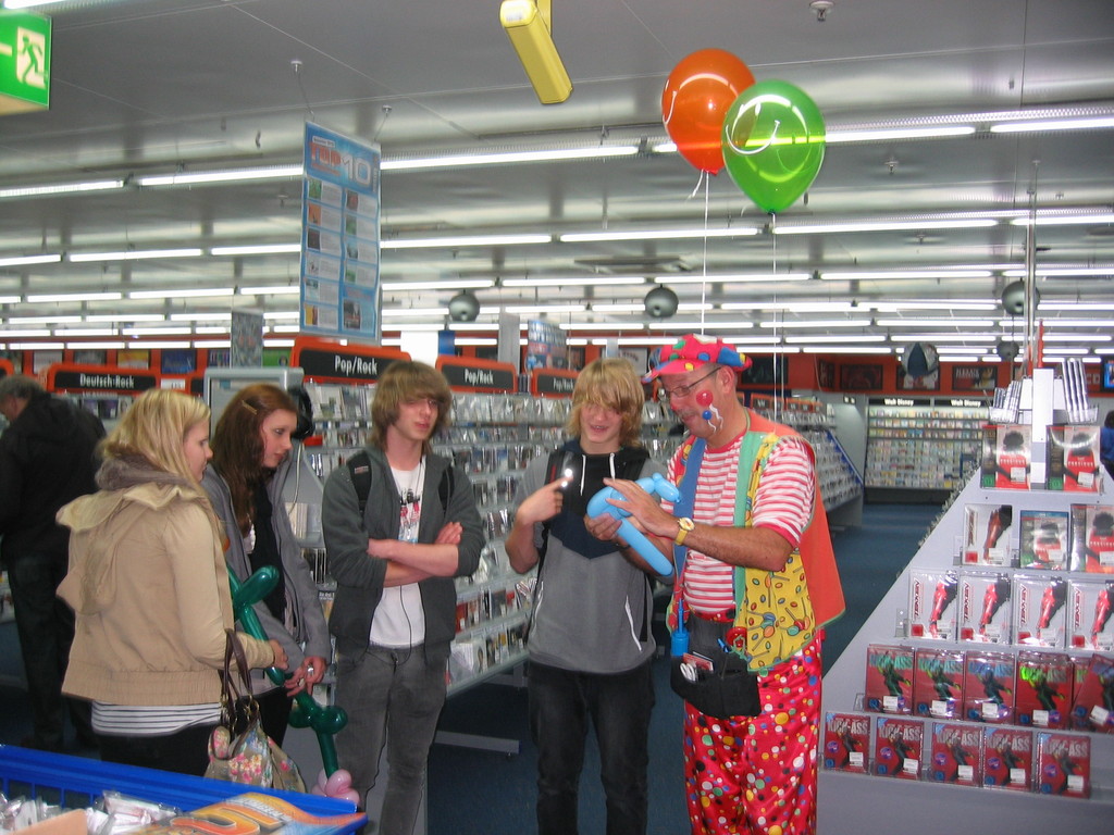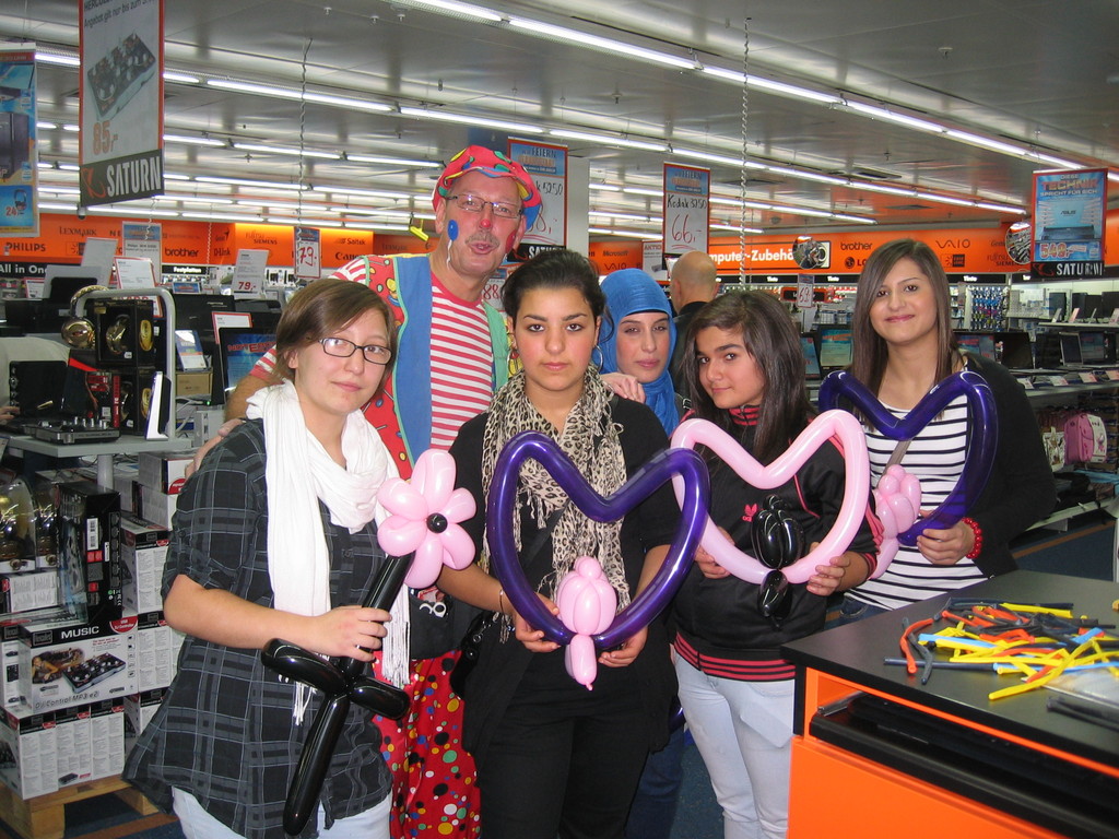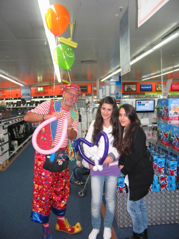 Sehr geehrte Betrachter meiner Homepage. Seit Jahren bestellt mich der SATURN Remscheid zur Geburtstagsunterhaltung. "Die witzige Luftballonshow mit Clown Reinoldi" wird dann größtenteils durchgeführt. Schöne Ballondekorationen habe ich auch schon für SATURN Remscheid gefertigt. Weiterhin kann ich Ihnen aber noch mein Glücksrad anbieten. Ich denke auch Popcorn für Groß und Klein würde gut ankommen :-) Wenn ich Ihr Interesse geweckt habe würde ich mich über eine Kontaktaufnahme freuen. Bitte schauen Sie sich vorher meine Bilder und Filme an. Vielen Dank für Ihre Aufmerksamkeit.